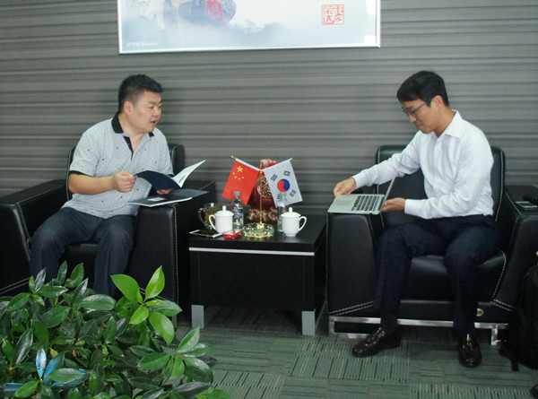 雷鳴董事長一行陪同韓方代表參觀了榮事達智能研發中心二樓展廳,向韓方代表介紹了榮事達凈水機產品系列,簡要介紹了公司發展概況及后期產品更新理念。隨后,雙方就凈水機產品設計合作事項進行了長達兩個半小時的溝通洽談。