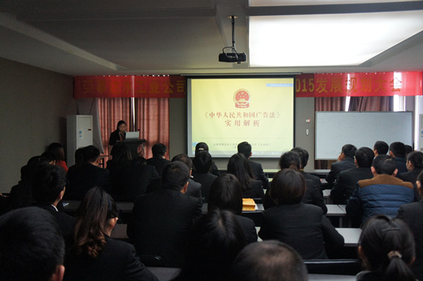 •     新修訂的《中華人民共和國廣告法》于9月1日起正式施行,為更好地貫徹、落實新廣告法,保證公司市場宣傳語營銷活動的有序進行,11月10日下午,榮事達水工業公司新廣告法學習會議在智能研發中心三樓會議室召開,公司各事業部、成員單位總經理及企宣、銷售等相關人員濟濟一堂,共同學習了新廣告法的相關規定。