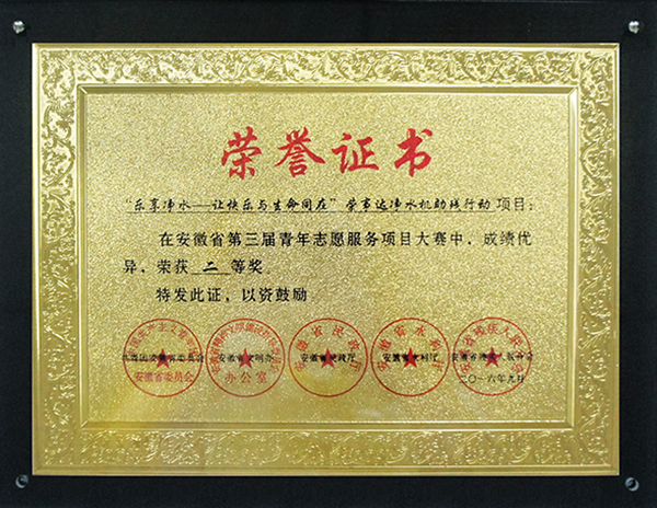 2016年,榮事達(dá)水工業(yè)公司走進(jìn)紅色革命老區(qū)——金寨縣,攜手金寨希望公益服務(wù)中心及地方公益協(xié)會(huì)共同發(fā)起“‘給山區(qū)孩子一杯水’——援建金寨縣中小學(xué)凈水設(shè)備公益項(xiàng)目”,為金寨縣所有中小學(xué)援建直飲水系統(tǒng)400多套,全面呵護(hù)學(xué)生飲水健康。該項(xiàng)目被全國文明辦評(píng)為“全國百佳公益項(xiàng)目”。