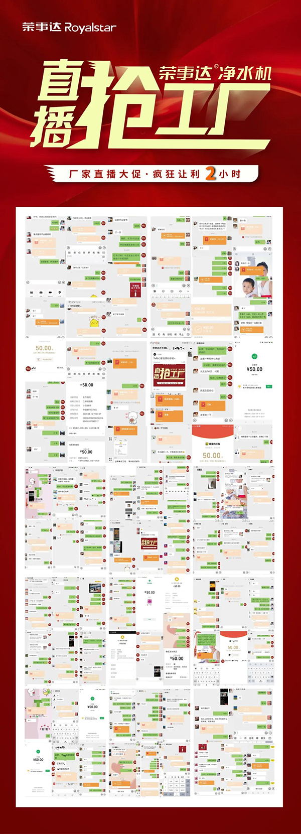 2020年伊始,疫情突然來襲,這是挑戰亦是機遇。榮事達創新思變,逆勢而上,各種大動作頻出,品牌活力盡顯。而此次線上直播開局之戰,在公司營銷團隊與全國各終端門店的同心協力之下,全速開啟搶灘市場的強勁勢頭,助力代理商開拓客戶資源,增進品牌熱度與終端銷售熱情。未來,榮事達會秉承初心,繼續將卓越產品與優秀服務帶給廣大消費者,全力呵護每一個家庭的飲水健康。