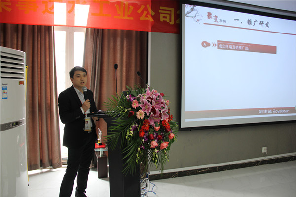 晚上六時,全體銷售精英參加了晚宴,王總在晚宴上作重要發言,他指出,2015年,在各部門的共同協作之下,榮事達凈水機網點覆蓋率穩步提升,3T模式在終端引發銷售狂潮,事業部銷售業績再創新高。他希望在2016年,廣大銷售精英將榮事達優質的產品、服務與終端營銷有機結合,奮勇爭先、昂首闊步刷新銷售戰績。