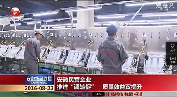 •        8月22日晚18時30分,《安徽新聞聯(lián)播》節(jié)目在新聞《推進(jìn)“調(diào)轉(zhuǎn)促”質(zhì)量效益雙提升》中,對榮事達(dá)水工業(yè)公司再次進(jìn)行了報(bào)道。