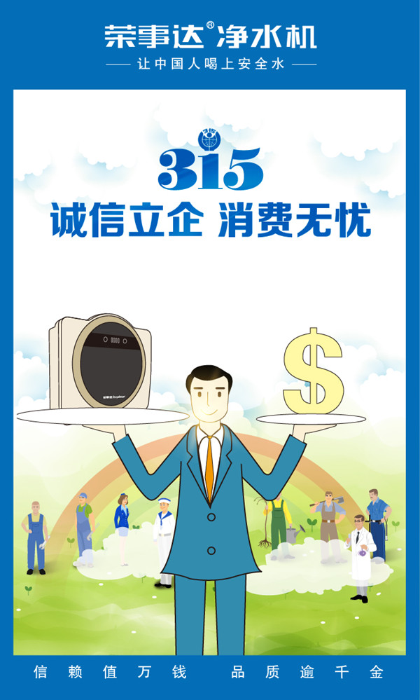 榮事達肩負保障飲水安全的使命,將大企業大品牌的責任心落在實處,以誠信立企,以誠信塑品牌,在推動創造誠實守信、公平有序的市場環境之中,成就企業價值!