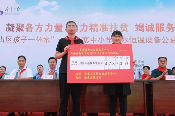 •       “六一”兒童節這一天,金寨縣的孩子們收到了極有意義的禮物。共青團金寨委員會、金寨縣希望公益服務中心、榮事達水工業集團共同發起的“給山區孩子一杯水”——金寨中小學凈水恒溫設備公益項目捐贈儀式在金寨金江實驗學校落幕,至此,持續兩年、覆蓋全縣所有中小學校的凈水恒溫設備公益項目畫上圓滿句號。該公益善舉得到了社會各界愛心人士的積極參與,受到學生、學校、家長們的一致好評,被全國文明辦評為“全國百佳公益項目”。