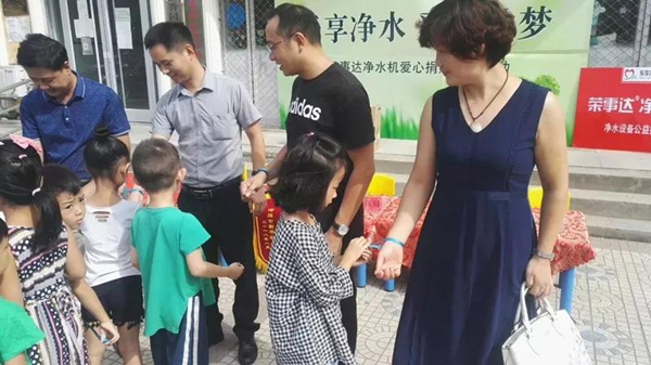 •       8月31日上午,“樂享凈水 愛心筑夢,榮事達凈水機愛心捐贈活動”于河北省河間市順利開展。榮事達水工業公司聯合當地經銷商為河間市新華第一幼兒園捐贈凈水設備,以改善師生們的飲水條件。捐贈活動得到河間市教育局、城關教委、河間市廣播電視臺、河間市新華第一幼兒園等領導的大力支持和高度贊揚。