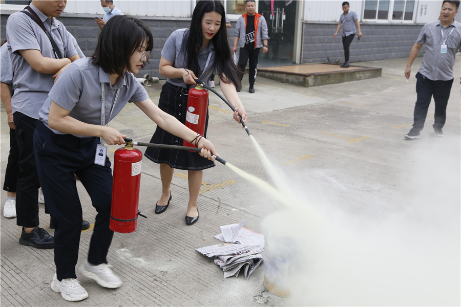 滅火演習現場,相關人員就消防器材使用規范,進行了詳細的講解與演練。在實操前先由消防指導員進行了滅火器的使用方法、 步驟和滅火姿勢等教學,然后安排員工現場實操滅火。集團各部門員工爭先拿起滅火器按照步驟進行實操滅火,反應熱烈。