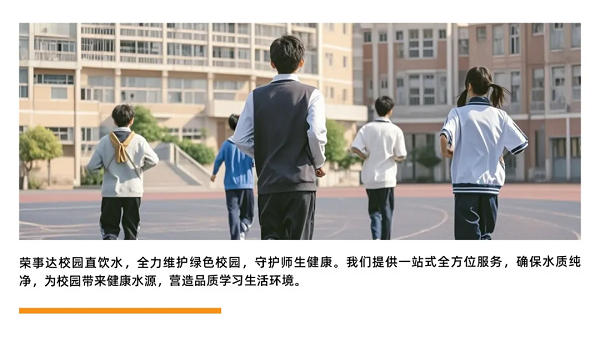 此外,榮事達校園直飲水還可根據(jù)學校的具體需求量身定制直飲方案。從需求分析、方案設計、設備選型到安裝調試、后期運維,榮事達提供了一站式、全方位的服務,確保了直飲水項目的順利實施與高效運行。