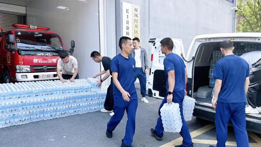 5月12日,榮事達(dá)水工業(yè)開展公益行動(dòng),集團(tuán)行政總監(jiān)雷鵬、黨支部書記肖曉曉來到雙鳳經(jīng)開區(qū)徐橋苑消防執(zhí)勤點(diǎn)、長豐縣消防救援大隊(duì)捐贈(zèng)飲用水,致敬最美“火焰藍(lán)”,以實(shí)際行動(dòng)傳遞企業(yè)的溫暖與擔(dān)當(dāng)。