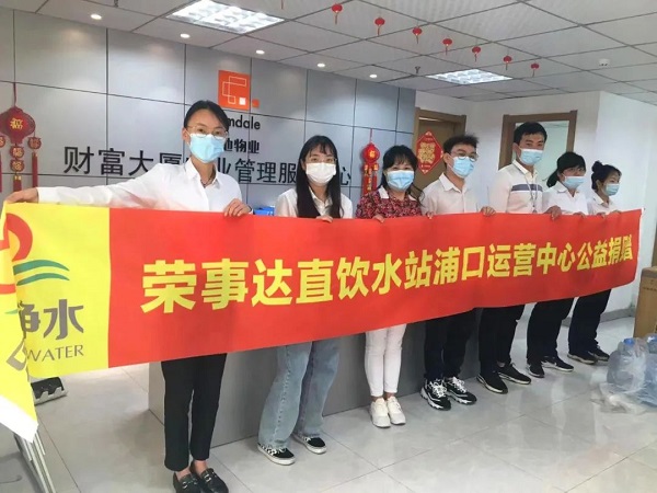 5月31日,榮事達直飲水站南京經銷商王新玲向上海金地物業有限公司南京分公司捐贈價值萬余元的物資——榮事達直飲水水卡和榮事達飲水機,保障全體物業工作人員在疫情防控期間也能喝上安全健康好水。